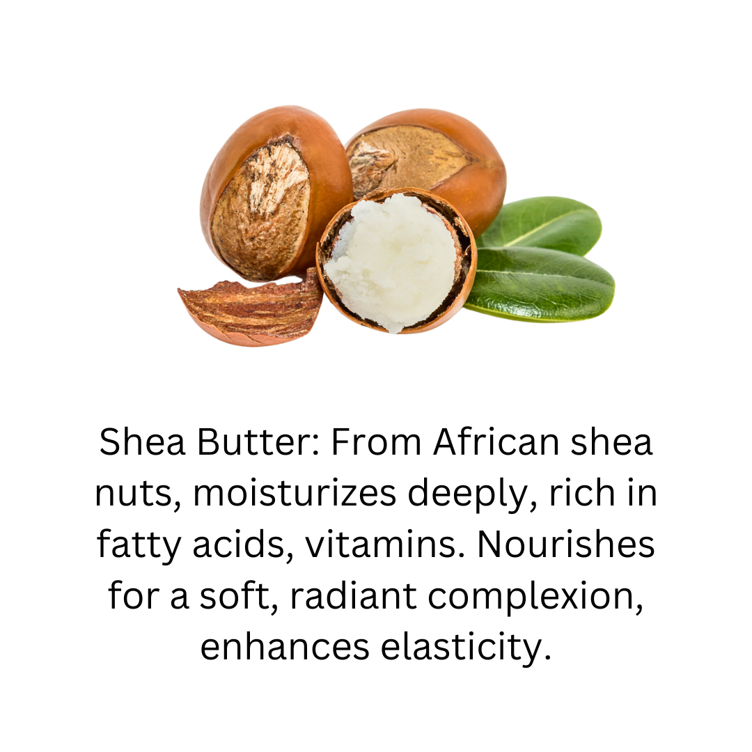 Ingredients: DEIONIZED WATER, SHEA BUTTER, BUTYLENE GLYCOL, PARAFIDIUM LIQUIDIOM, STEARIC ACID, GLYCERYL STEARATE,CETYL ALCOHOL, STEARYL ALCOHOL, FRAGRANCE PL, TRIETHINOLAMINE, PHYOXYTHANOL,CARYLYL GLYCOL, POTASSIUM SORBATE, HEXYLENE GLYCOL.